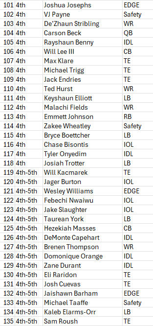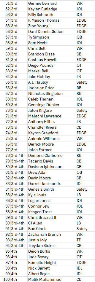 The formatting here sucks but whatever. I have it done. More than I can say for PFF.